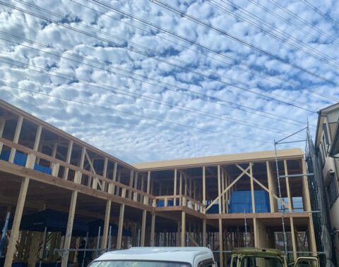 つい先日上棟したばかり。
