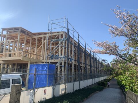 上棟の時期はまだ桜が咲いていたんですねcherryblossom.gifhappy01.gif