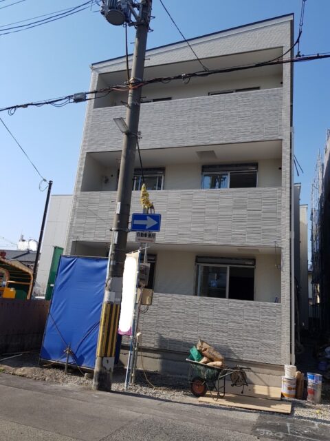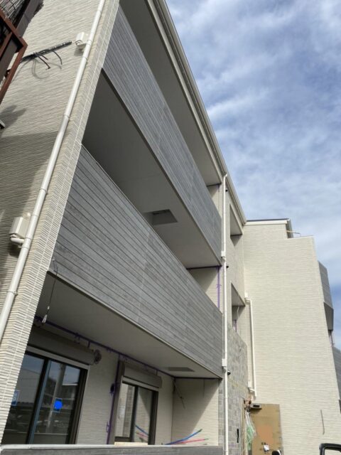 おはようございます。 本日は、A市で建設中の3棟建て共同住宅をご紹介します。 こちらはもうすぐ竣工予定の1棟目です。 外観はほぼ完...